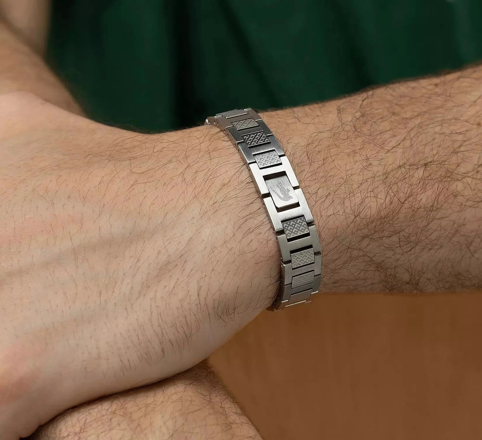 Unapređuje svaku kombinaciju: Ikonični Lacoste DNK provlači se kroz ceo dizajn Metropole narukvice - elegantne H-link narukvice sa petit piqué središnjim karikama i ugraviranim krokodilom na kopči. Sofisticiran i svestran dizajn, Metropole je stvorena da podigne svaku odevnu kombinaciju.